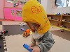 先日ひよこ組の防災頭巾が届いたので被る練習をしてみました!小さなお顔に大きな頭巾のフォルムがとっても可愛いです💕嫌がる子もいましたが、みんな鏡を見て不思議そうにしていましたよ😊
