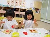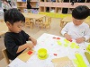 今月はどんぐりの制作と食育できのこ割きをしました🍄✨制作では今年度初めて糊貼りをしました。中には糊を触るのを嫌がる子もいましたが、1本指で量を調整しながら上手に貼って楽しむ様子が見られ「でーきた!」と嬉しそうな子どもたちでした☺