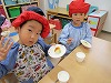 栄養士さんからお話やクイズでジャガイモについて教えてもらってから、いざクッキング!ふかしたジャガイモを崩して、片栗粉を少量混ぜてから手で丸めて自分の好きな形を作りました♡ みんながお昼寝している間に焼いてもらって、おやつの時に甘辛のみたらしだれを塗って完成!自分で作った芋餅の味は格別でした😊