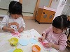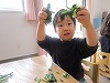 食育では臭いを嗅いだり、ほうれん草の色素が手に移って「見てみて」と緑色の指を見せて喜んでいました。