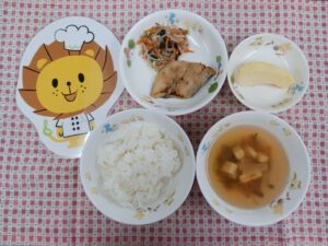 きょうの西京焼きは、みそ、料理酒、みりんに加えて、魚の臭みを抑えるために、にんにく、生姜、ごま油もはいった味噌ダレを塗って焼き上げました。子どもたちは和食が好きなようで、ご飯が進んでいました😄