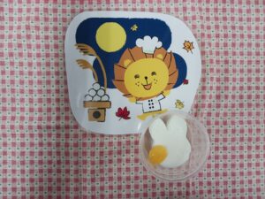 今日は十五夜です。十五夜に昇る月は「中秋の名月」とも呼ばれ、ススキを飾り、お月見団子をお供えする風習が現代にも受け継がれています。今日は、ご飯でウサギの顔を作り、さつま芋を満月に見立てて、お月見をしているウサギをイメージしたカレーライスにしました。子どもたちはかわいいと言いながら、もりもり食べていました😄