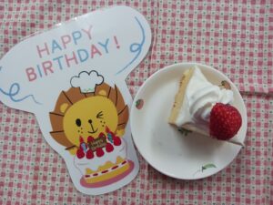 おやつは、いちごのショートケーキでした🍓子供たちは、いちごを先に食べるのか、最後に食べるのか悩みながらも、みんな喜んで食べていました😋