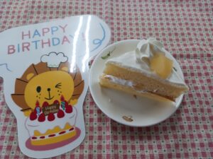 午後おやつは、りんごのショートケーキでした。卵を使ったシフォン風生地に、ホイップクリームとりんごの缶詰をトッピングして盛り付けをしました。9月がお誕生日のお友達も、そうでないお友達も、「私は○○日が誕生日だよ~」「僕は△△が誕生日なんだ~」と楽しそうに会話をしながら食べていました👏