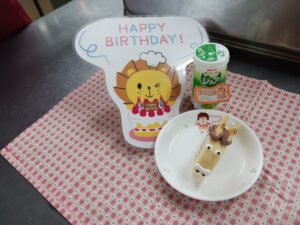 子どもたちは、青くないけど、「ドラえもんってわかったよ!」「顔が白いからしろえもんだね!」「1月は○○君がお誕生日なんだよ」と言いながら、楽しく食べてくれていました☺
