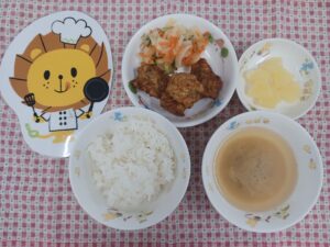 ≪昼食≫🍚御飯 🍚豆腐の青のり揚げ 🍚さっぱりサラダ 🍚味噌汁 🍚パイン缶