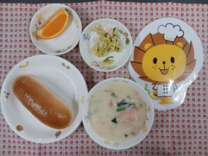 きょうは、鮭のクリームシチューでした。