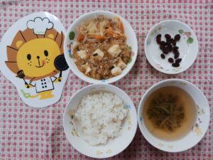 ≪昼食≫🍚御飯 🍚麻婆豆腐 🍚春雨サラダ🍚中華風スープ 🍚レーズン